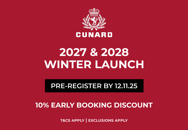 Make a Cunard Fare booking on selected itineraries sailing between December 2025 and April 2027, and receive additional on board credit.