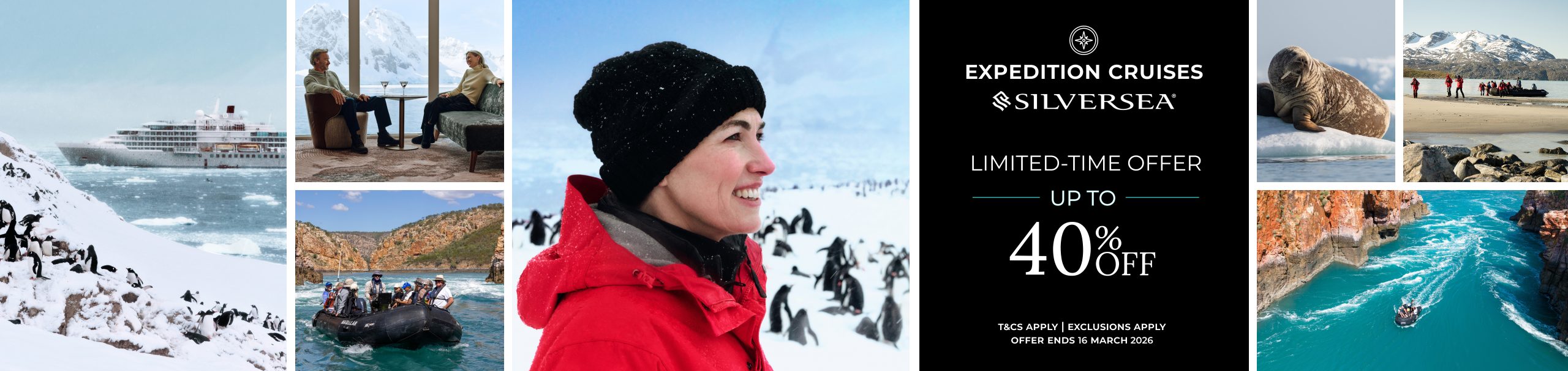 Limitless Discovery Offer applies to new, individual All-Inclusive Plus and All-Inclusive fare double occupancy bookings made between December 3, 2025 and February 28, 2026 on select voyages, excluding full World Cruises, full Grand Voyages and special combination voyages, and provides percentage savings in the amounts below*, varying by departure date and suite category. Offer is combinable with Event Certificates, National Account Amenities, Referral Savings, Onboard Savings, Combination Savings (back-to-back), Kids Savings, Venetian Society Savings, and promotional groups. Offer not combinable with Last Minute fares. Cancel and re-books do not qualify. Offer is capacity controlled, subject to availability and can be removed at any time without prior notice. Single supplements apply and vary by voyage. Other restrictions may apply. For full offer terms and conditions, please visit https://www.silversea.com/best-luxury-cruise-deals/limitless-discovery.html. Ships’ registry: Bahamas and Ecuador.