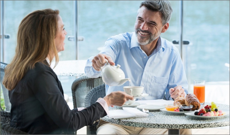 Your luxurious bathroom features a shower complete with decadent toiletries, as well as comfortable bathrobes and slippers, the perfect attire for getting ready for an evening meal. And, the suite comes with an exclusive invite to dine at the Captain’s Table for an evening sure to become a highlight of your river cruise. Take advantage of having four laundered items a day and prepare that special suit or gown for a night such as this or for an occasion you may be celebrating. You can even have pre-dinner canapés delivered to your door and after-dinner sweet treats to enjoy with a drink from your complimentary minibar.