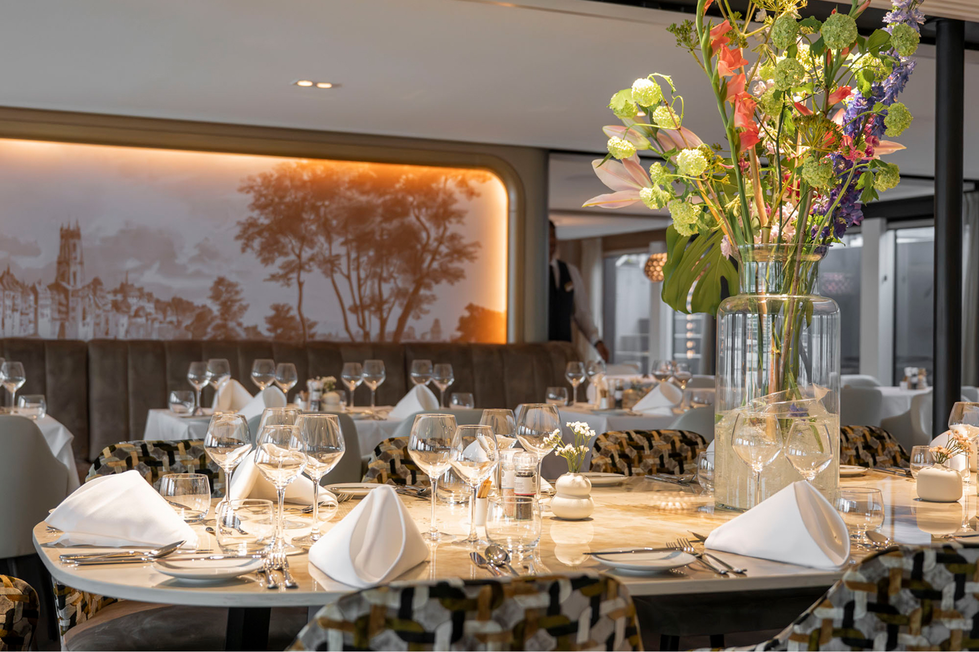 Launched in 2024, this 135-metre vessel accommodates up to 172 guests across 86 elegantly appointed cabins, including spacious suites and panoramic staterooms. Floor-to-ceiling windows and a generous sun deck invite guests to fully appreciate Europe’s scenic waterways, while stylish interiors showcase Dutch craftsmanship and high-end materials.