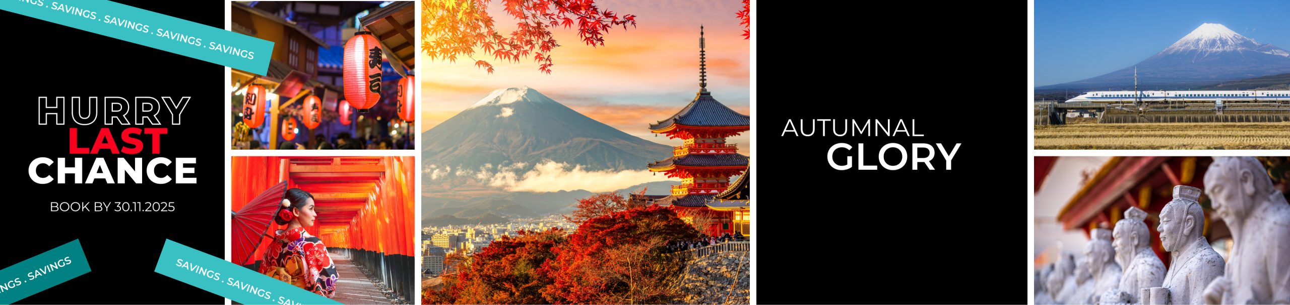 Experience Tokyo’s neon-lit nights, Mount Fuji’s poetic silhouette, and a cruise through Japan’s soul – Osaka’s flavours, Hiroshima’s echoes and Busan’s coastal delights.