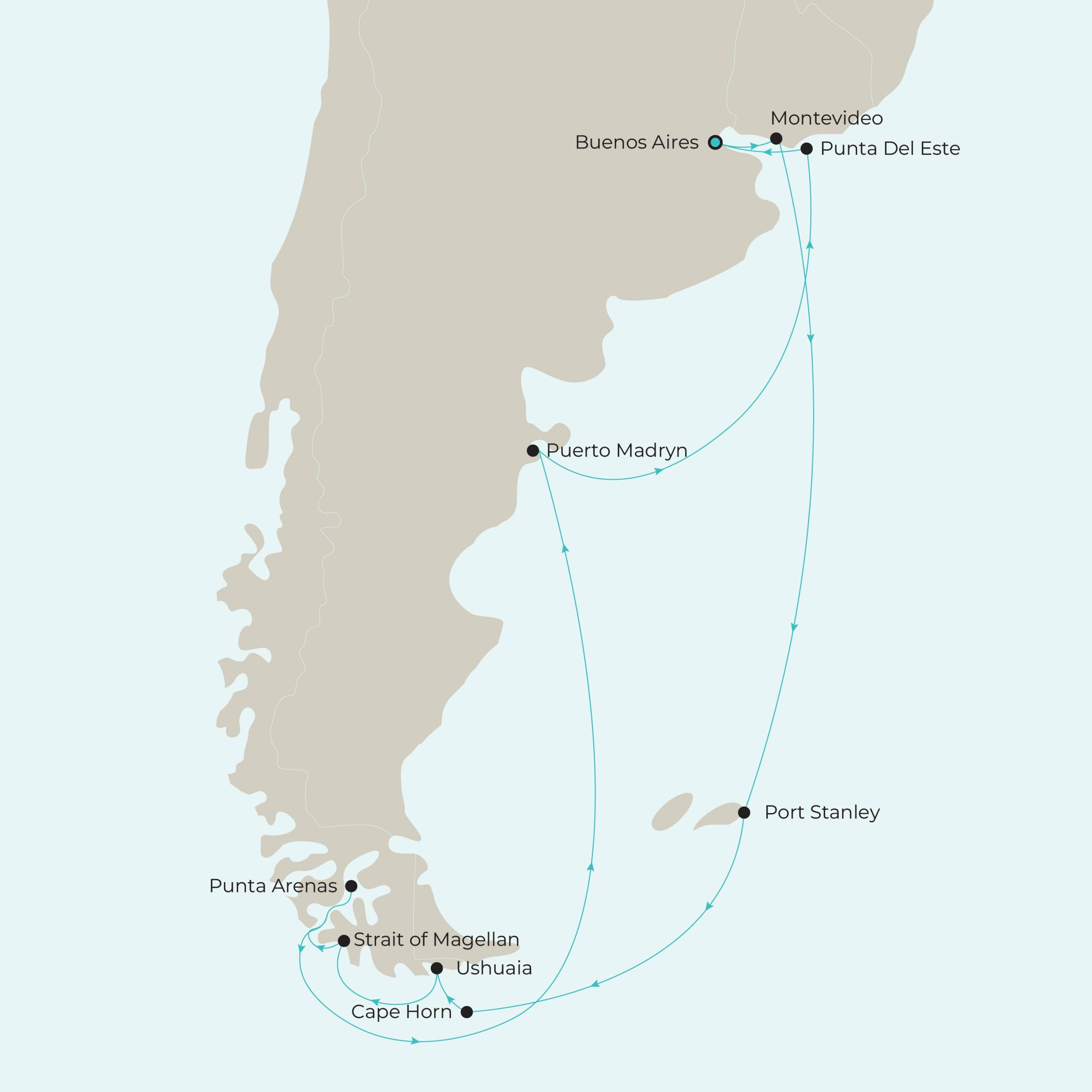 From the cultured boulevards of Montevideo to the raw beauty of the Falkland Islands and the mythic drama of Cape Horn, each destination feels like a chapter from a grand travelogue. You’ll venture into Patagonia’s remote wilderness, glide through the legendary Strait of Magellan, and walk among penguins in Puerto Madryn’s UNESCO-listed Peninsula Valdes. Meanwhile, days at sea offer time to unwind, with world-class dining, sophisticated lounges and panoramic ocean views.