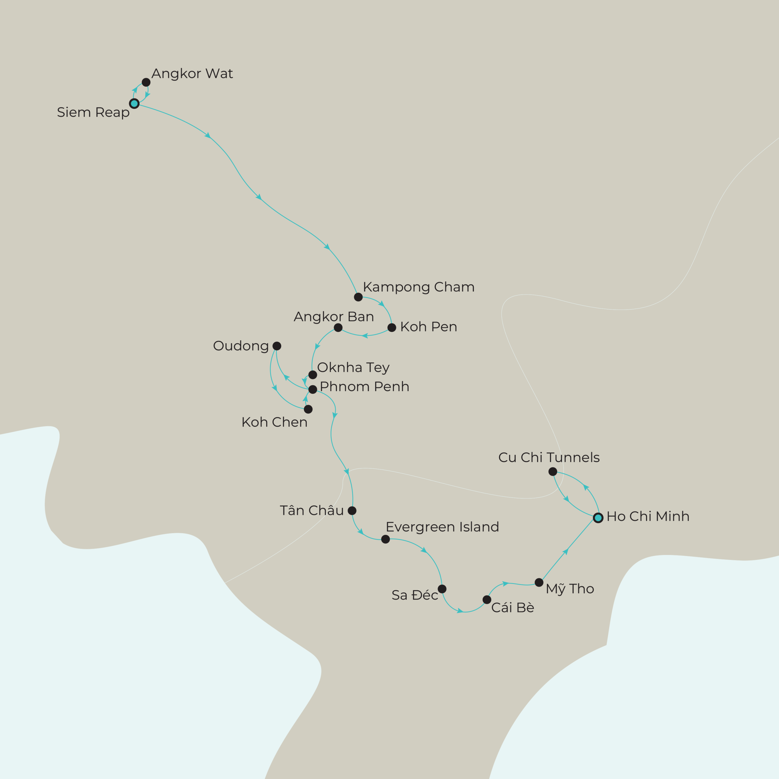 From Angkor Wat bathed in morning sunlight to the infamous labyrinth of the Củ Chi Tunnels, this unforgettable adventure immerses you in the rich traditions of two great nations. Beginning in Siem Reap, tours of intricate temples, visits to local charities, and compelling evening entertainment draw you into the area’s unique character and enduring community traditions.