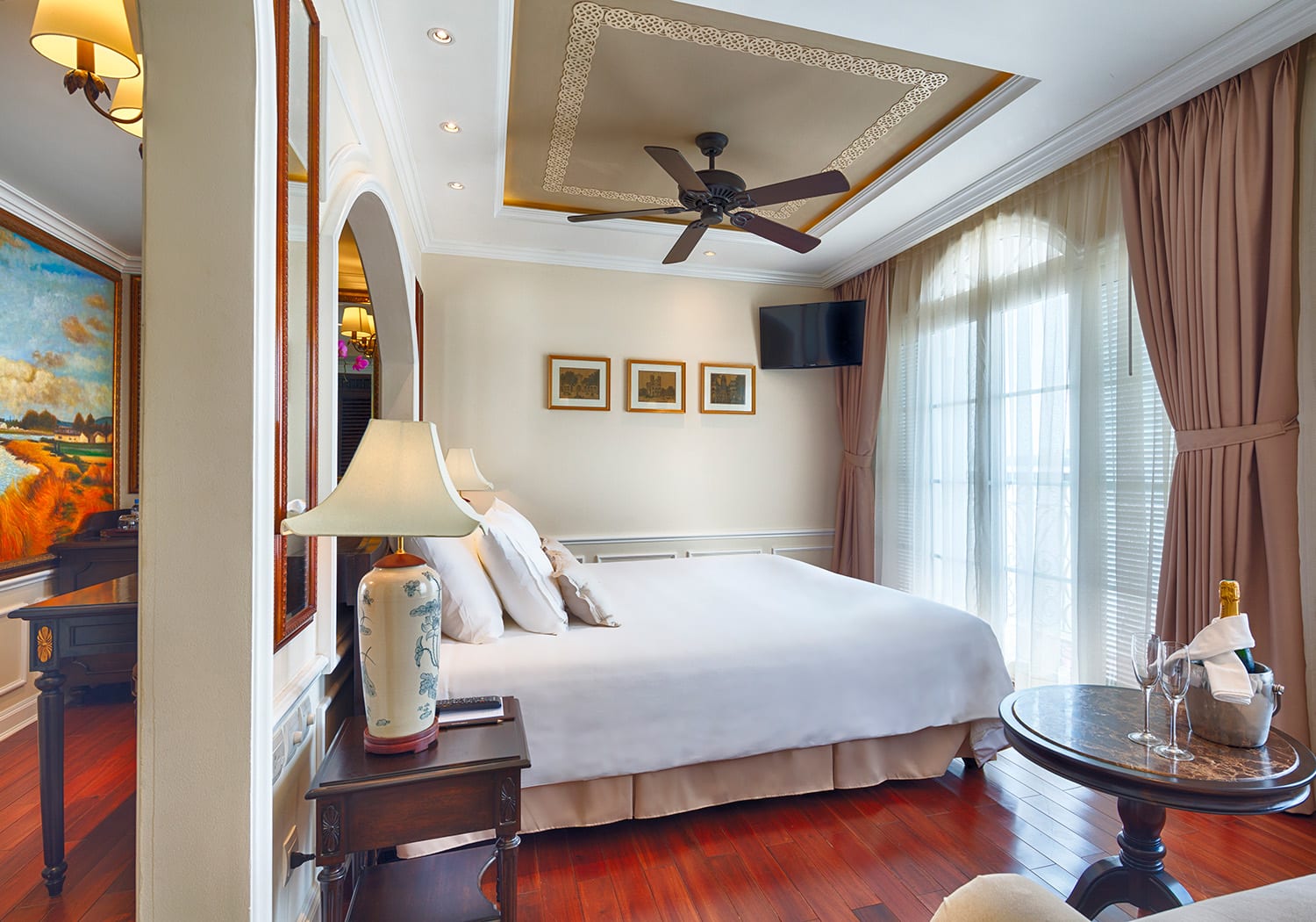 Indulge yourself in the Superior Suite after a long day exploring the wonders of Vietnam. Adorned with classic décor, such as a personal writing desk and fabulously furnished floors, these spacious and nostalgic rooms offer an array of essential modern amenities to ensure your comfort.