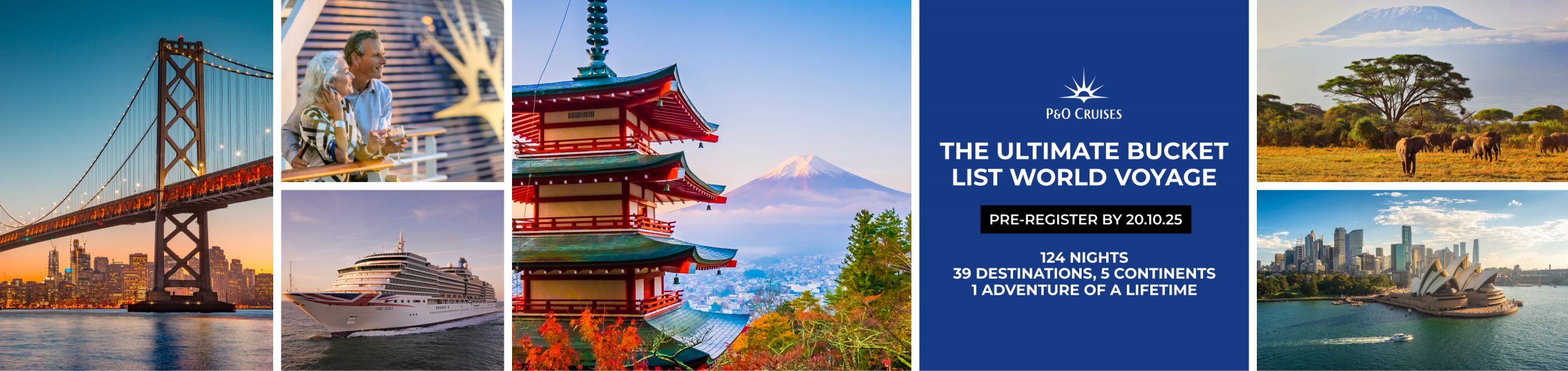 Set sail on an extraordinary 124-night bucket-list journey onboard Arcadia, P&O Cruises’ adult-only ship, where classic charm meets refined elegance.