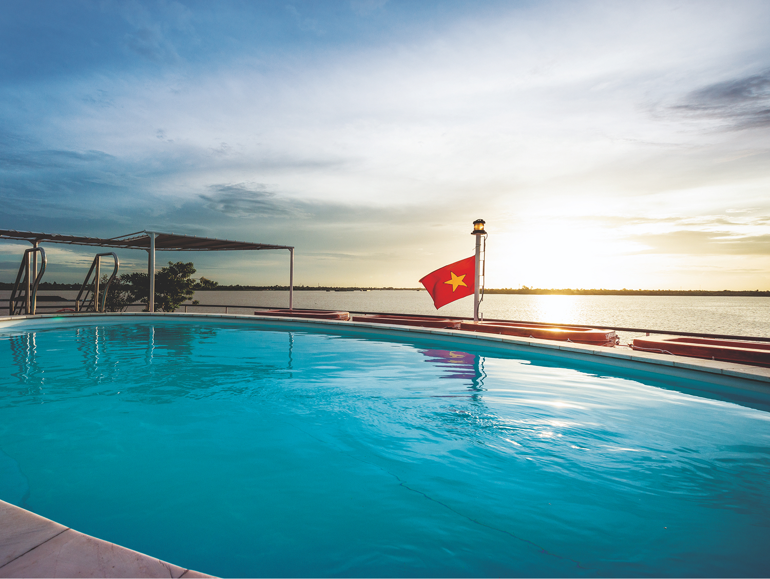 Onboard facilities include a spacious sun deck – complete with a pool, a high-quality restaurant, a lounge with panoramic views, and a relaxing spa. RV Lotus also offers an array of onboard entertainment and included excursions, allowing you to fully immerse yourself in the captivating contrasts of Vietnam and Cambodia.