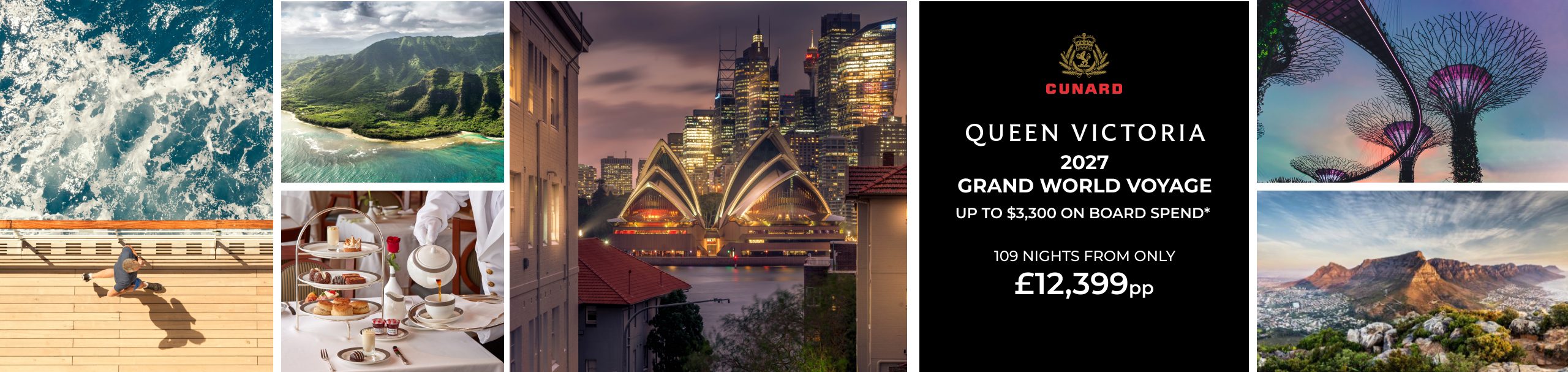 Experience the timeless elegance of Cunard during a captivating voyage that encapsulates the essence of world exploration.