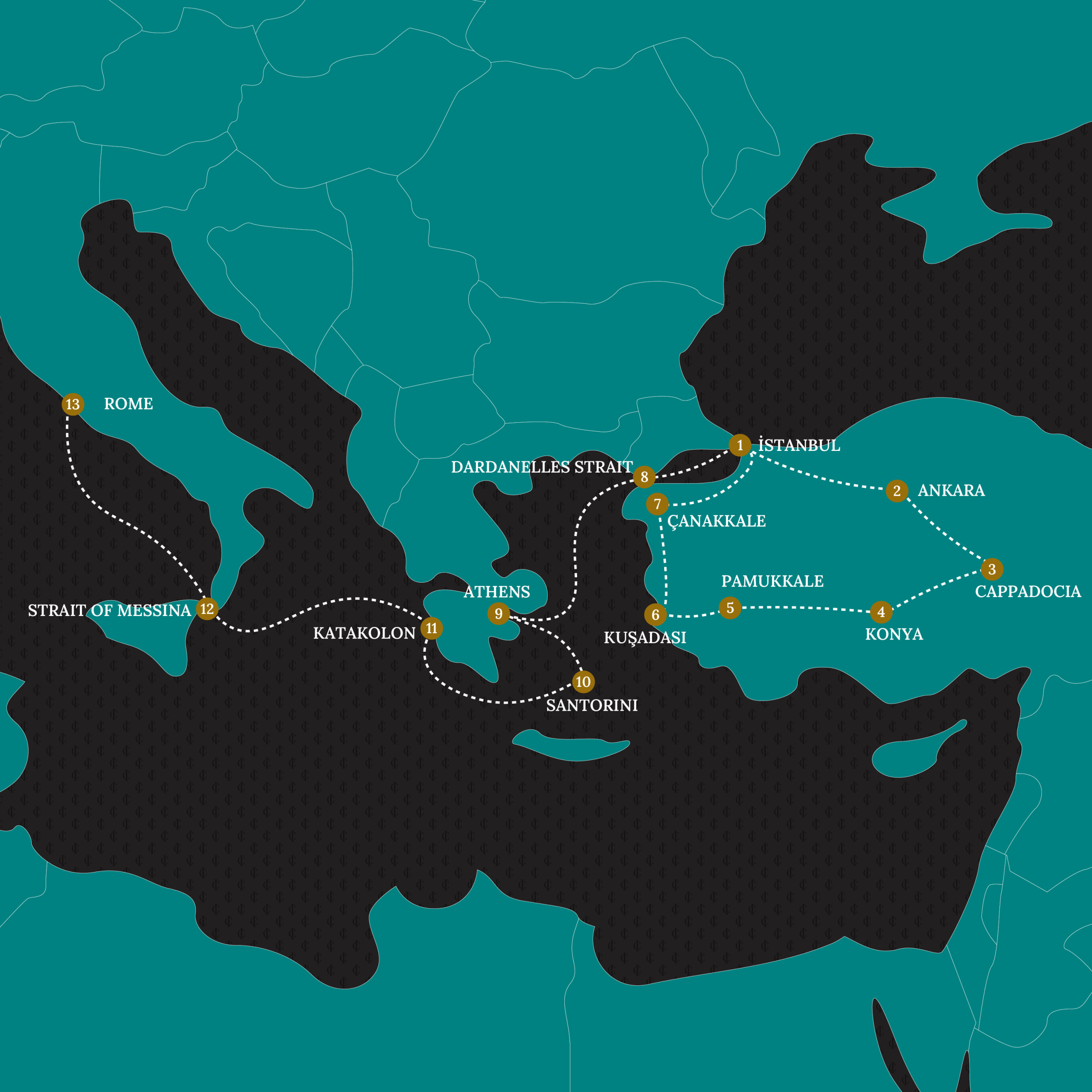 Flying to İstanbul, your holiday begins with a storied journey through the history of ancient Türkiye. Step back in time as you explore Cappadocia’s magical rock formations, stroll through the grand ruins of Ephesus, marvel at Pamukkale’s gleaming white terraces, feel the echoes of history in Troy, and uncover the poignant history of Gallipoli battlefields.