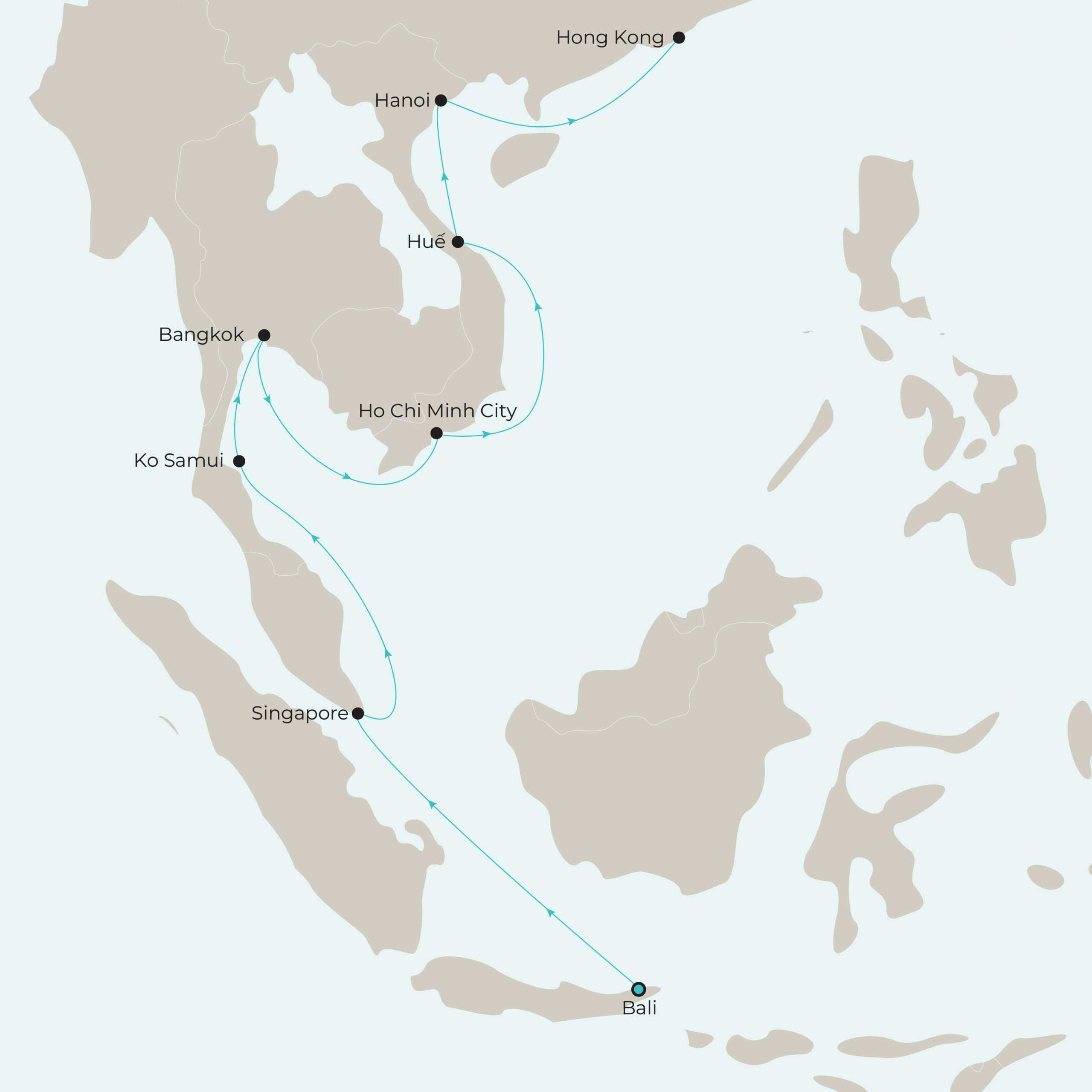 Embarking Celebrity Solstice®, you’ll embark on a breathtaking cruise across Southeast Asia – enhanced by Celebrity’s exceptional service. En route to Hong Kong, you’ll visit captivating destinations: the beautiful Ko Samui; dynamic Bangkok, where skyscrapers sit alongside shrines; Ho Chi Minh City, known for its rich history; Huế, home to the famous Perfume River, and Hanoi, a melting pot of culture.