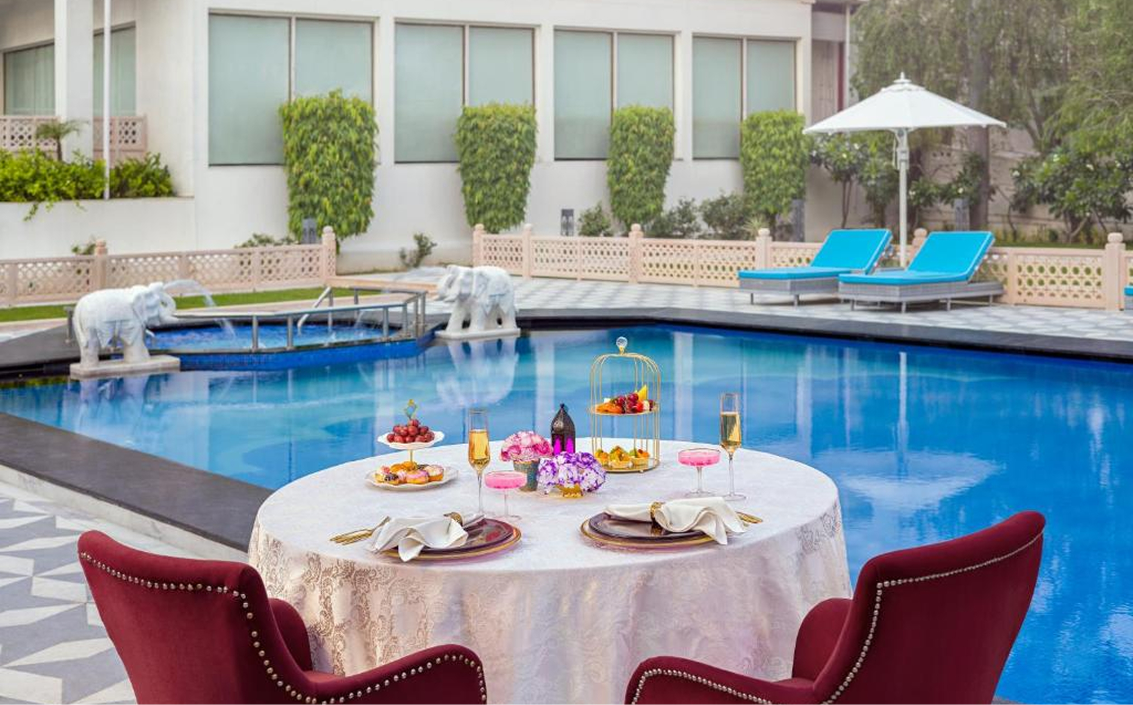 The Jaipur Marriott Hotel is a luxurious five-star property located in the heart of Rajasthan’s capital city, Jaipur. Combining modern elegance with traditional Rajasthani hospitality, it offers well-appointed rooms and suites designed with both comfort and style in mind. The hotel features multiple dining options, including Saffron for authentic Indian cuisine and Okra for international flavours. You’ll also find a rejuvenating spa, outdoor pool and state-of-the-art fitness centre yours to use as you wish.