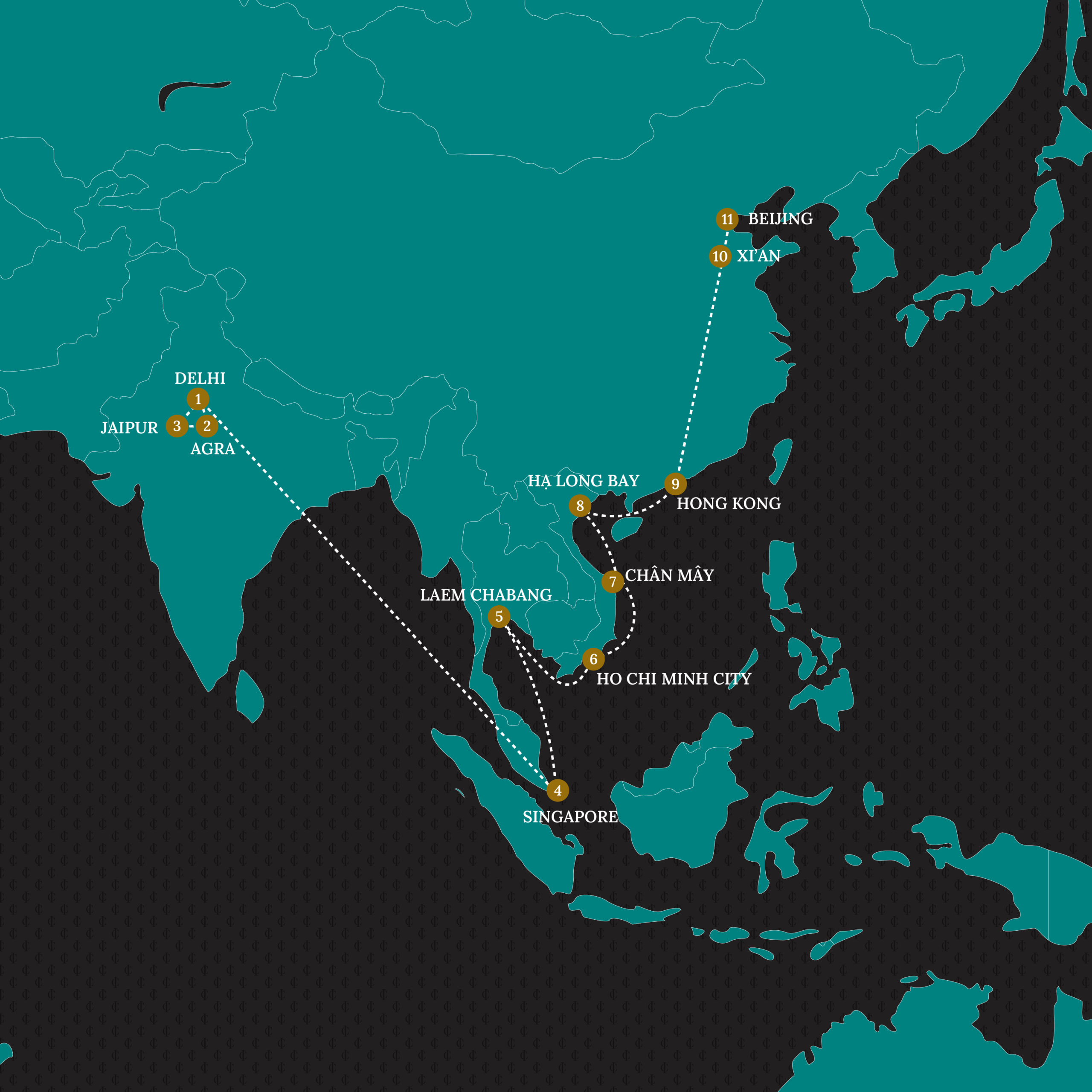 Journey through the heart of ancient Asian civilisation as you embrace India’s Golden Triangle, uncover China’s historic treasures and cruise the enchanting coasts of Southeast Asia.