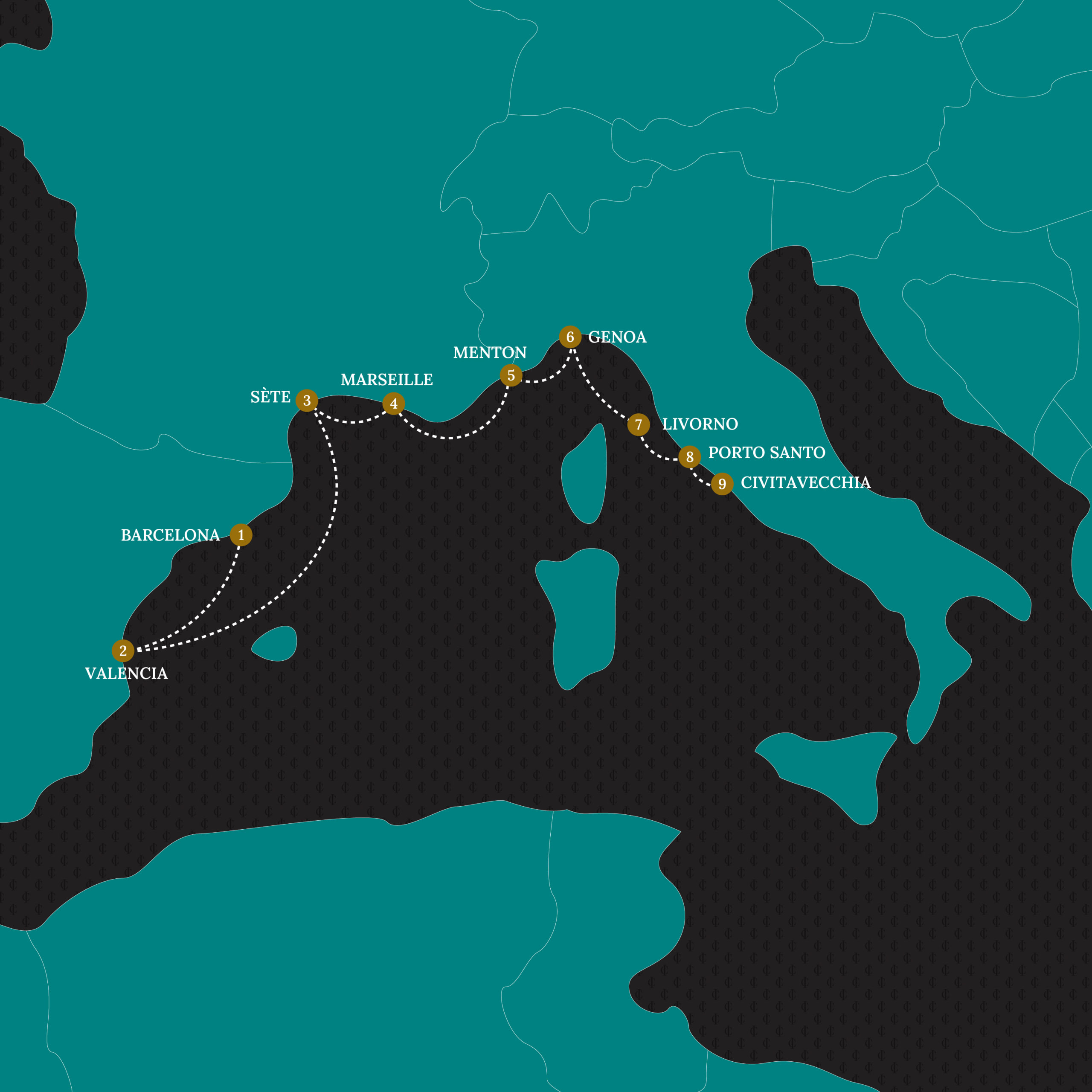Calling first to Valencia, celebrated for its vibrant culinary scene, you’ll then sail to Sete, a charming French port renowned for its canals and seafood. Next, explore Marseille, and continue to Menton, the “Pearl of France”, famous for its picturesque Old Town and lemon-scented charm. Discover Genoa’s rich maritime history before an overnight stay in Livorno provides the perfect gateway to Tuscany’s treasures. Next, journey to Porto Santo Stefano, a quaint Italian seaside village before disembarking in Civitavecchia.