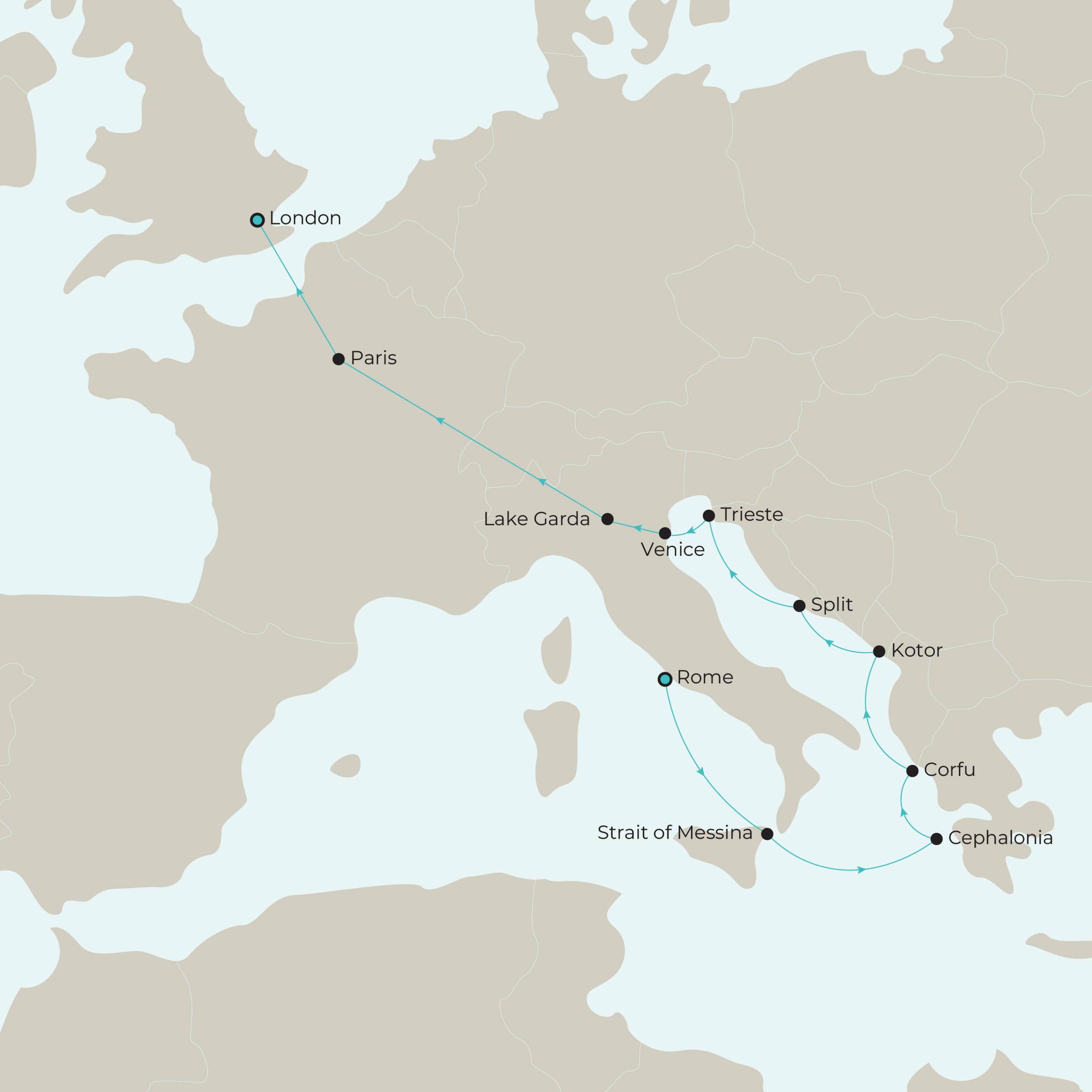Offering a gentle introduction to Europe before the grandeur of the Venice Simplon-Orient-Express and the opulence of Cunard’s Queen Victoria, Lake Garda invites you to enjoy three nights of lakeside serenity – with charming towns and tranquil waters. Once on the open ocean, you’ll uncover the wonders of the Mediterranean – sailing through the sparkling Messina Strait, lingering in the charming streets of Corfu, and marvelling at Kotor’s dramatic scenery.