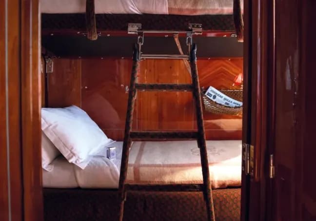 The restored 1920s sleeper cabins are some of the most luxurious train accommodation in the world. Each one is beautifully appointed with exquisite craftsmanship, such as bespoke soft furnishings and polished wood.