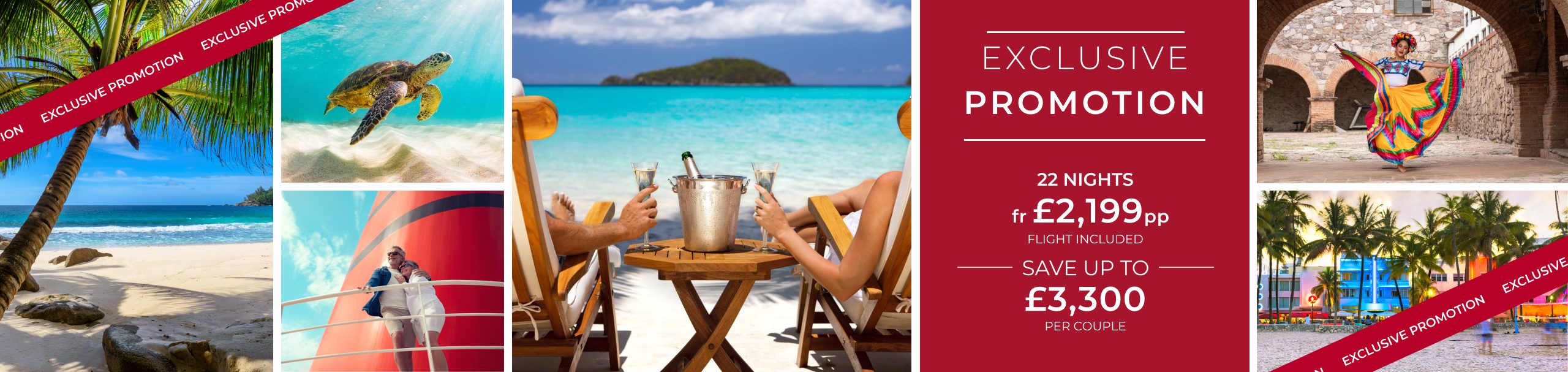 Celebrate the New Year with an extraordinary Transatlantic crossing, combining exotic destinations with a luxury Cunard voyage and a one-night hotel stay in sun-dappled Miami.