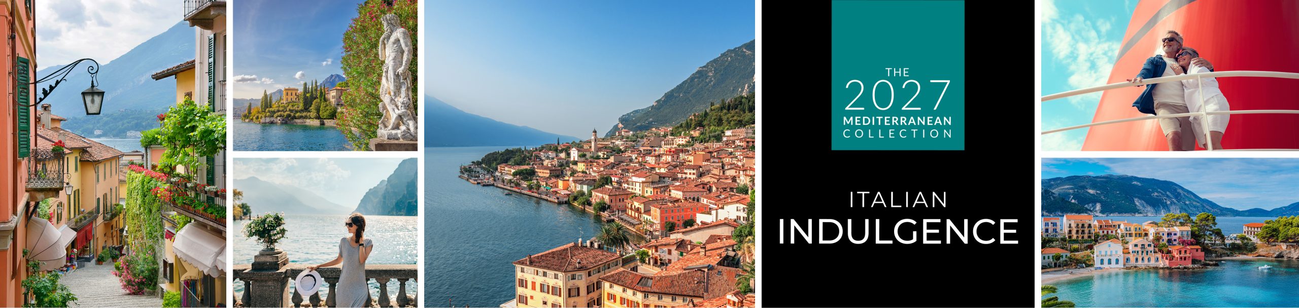 From the waterfront glamour of Italy’s lakes to the Golden Era opulence of a Cunard Queen, unveil the beauty of the Adriatic Sea and the Mediterranean.