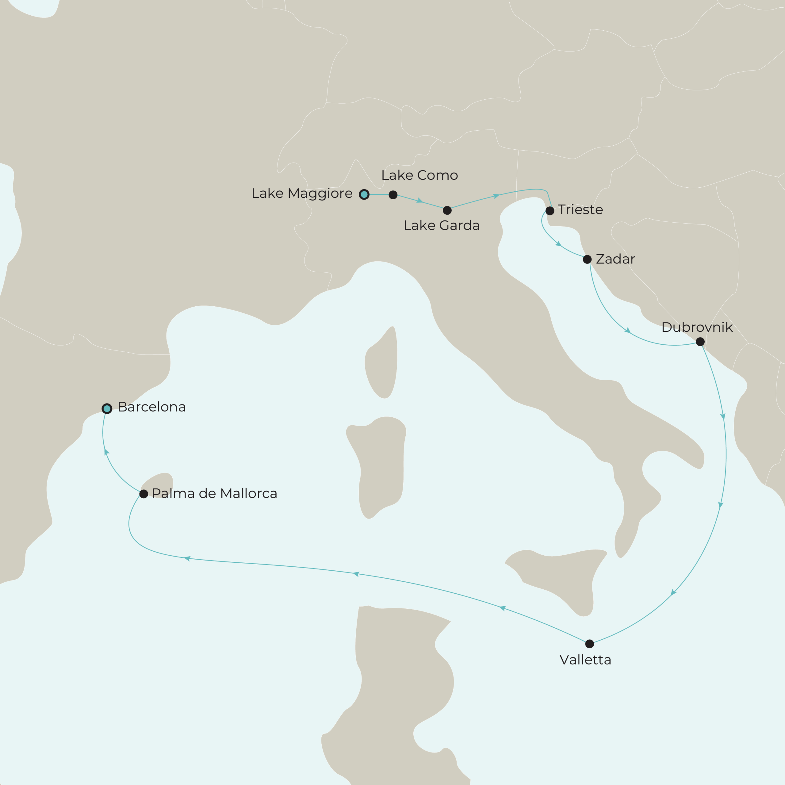 Lose yourself in the beauty of Lake Maggiore, Lake Como and Lake Garda ahead of a luxury Mediterranean cruise on board Queen Victoria.