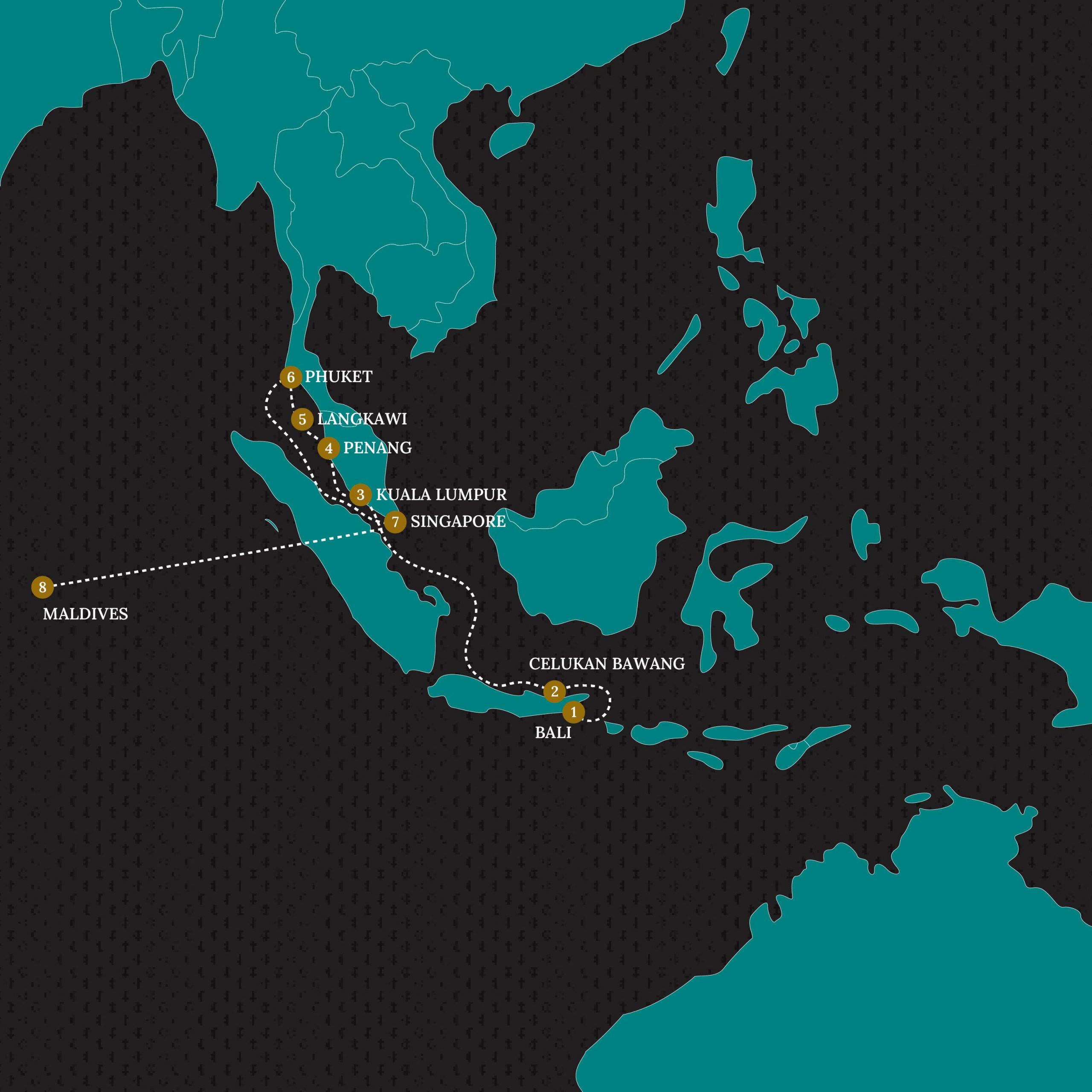 Next, you’ll embark Celebrity Millennium® for an 11-night cruise through southeast Asia. Discover the serene beauty of Celukan Bawang, the dynamic energy of Kuala Lumpur, and the heritage charm of Penang, where an overnight stay invites deeper exploration. Call at Langkawi’s lush isles before another overnight in Phuket, perfect for golden sunsets, before disembarking in Singapore. Finish your journey in pure bliss with five sumptuous nights in the Maldives, where turquoise lagoons, white sands and all-inclusive indulgence promise the ultimate escape.