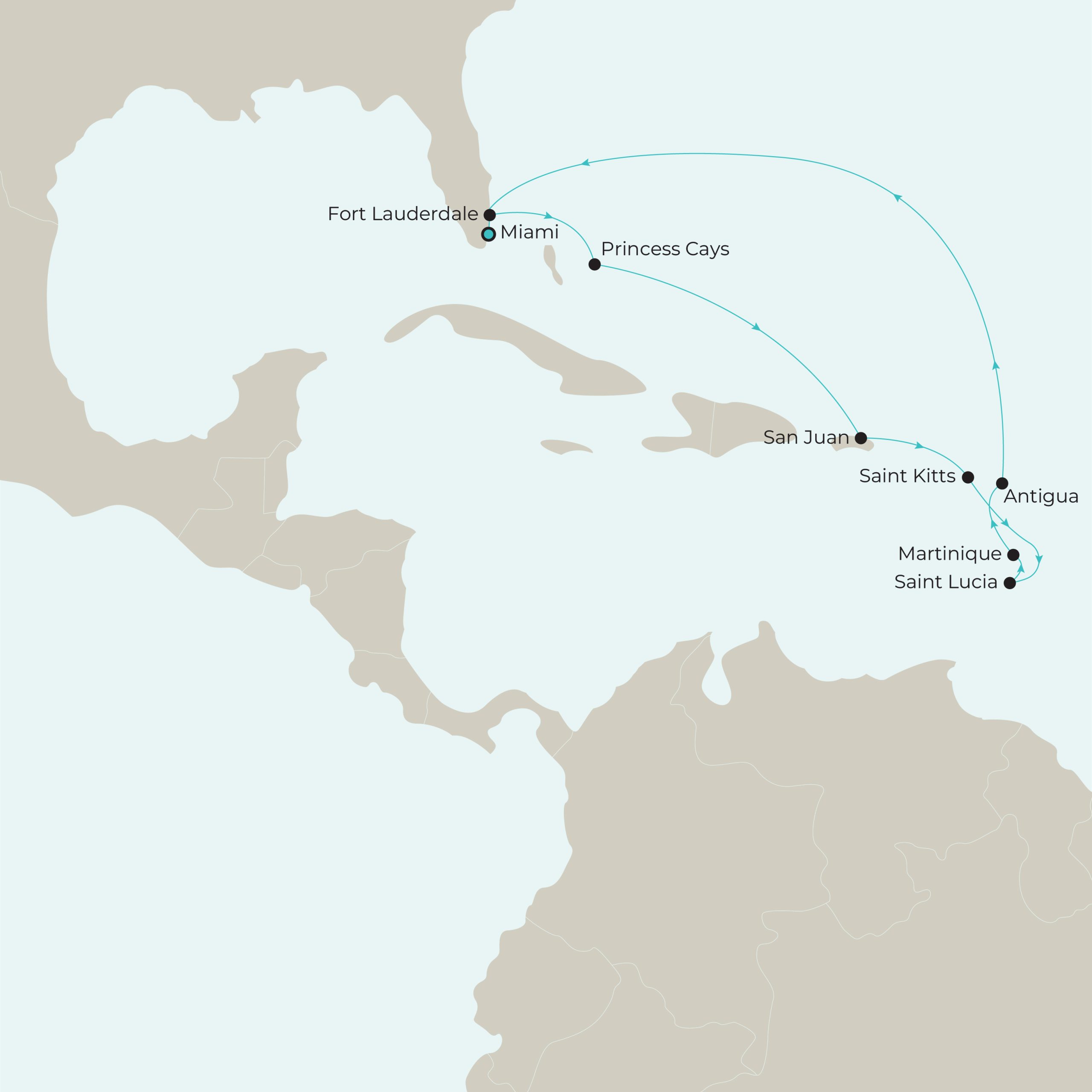 From the exclusivity of Princess Cays to the island charm of Antigua, embark on a voyage of glamour and prestige, blending two nights in Miami with a blissful Caribbean cruise.