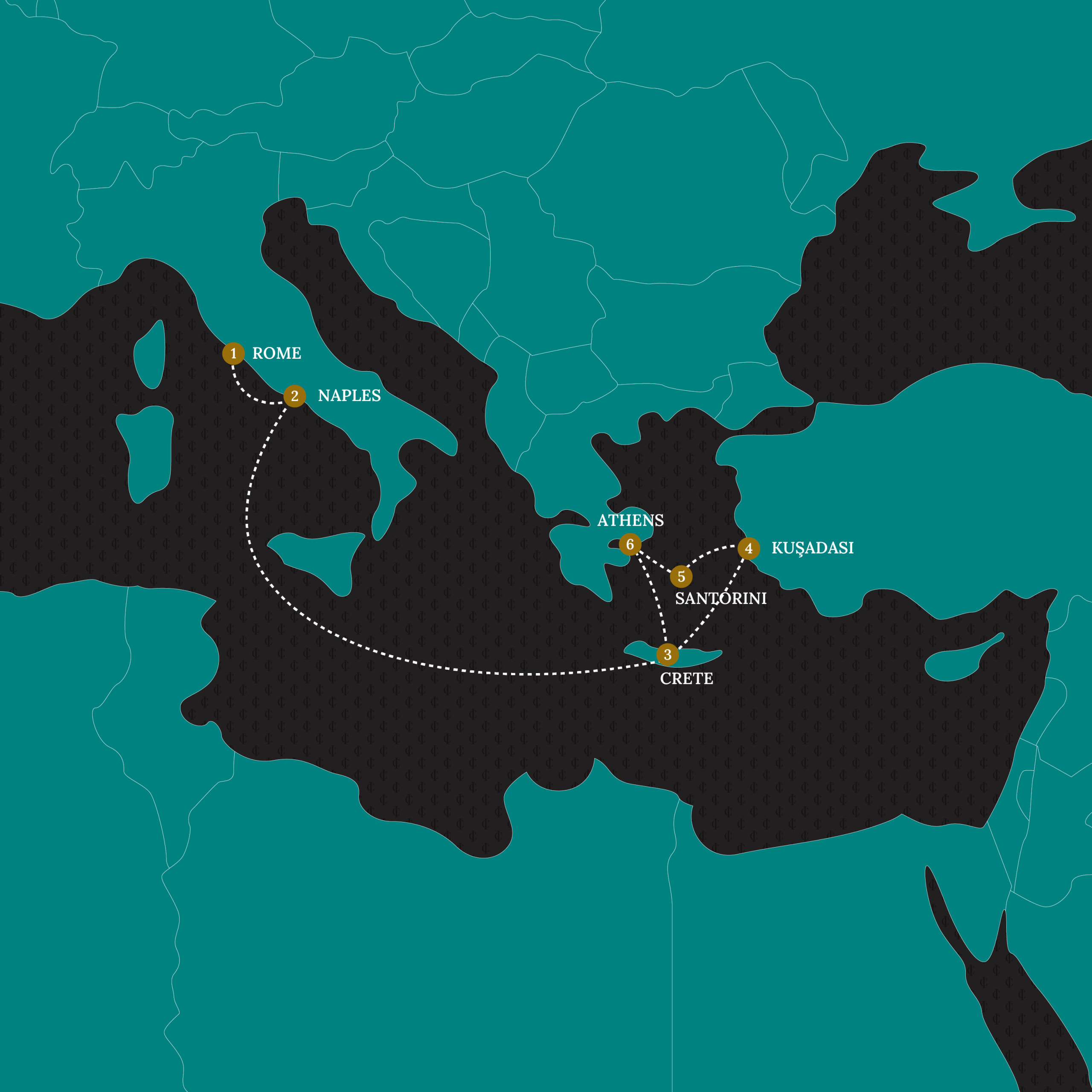 Set sail from Rome on a magical eastern Mediterranean voyage to Athens, before soaking in Crete’s heavenly atmosphere over four luxurious nights.