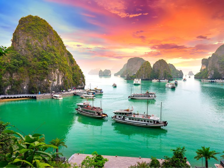 Encounter the idyllic wonders of Hạ Long Bay in northern Vietnam during an overnight in port. A UNESCO World Heritage site, sheer limestone cliffs rise from tranquil emerald seas and hidden caves border secluded golden-sand beaches.