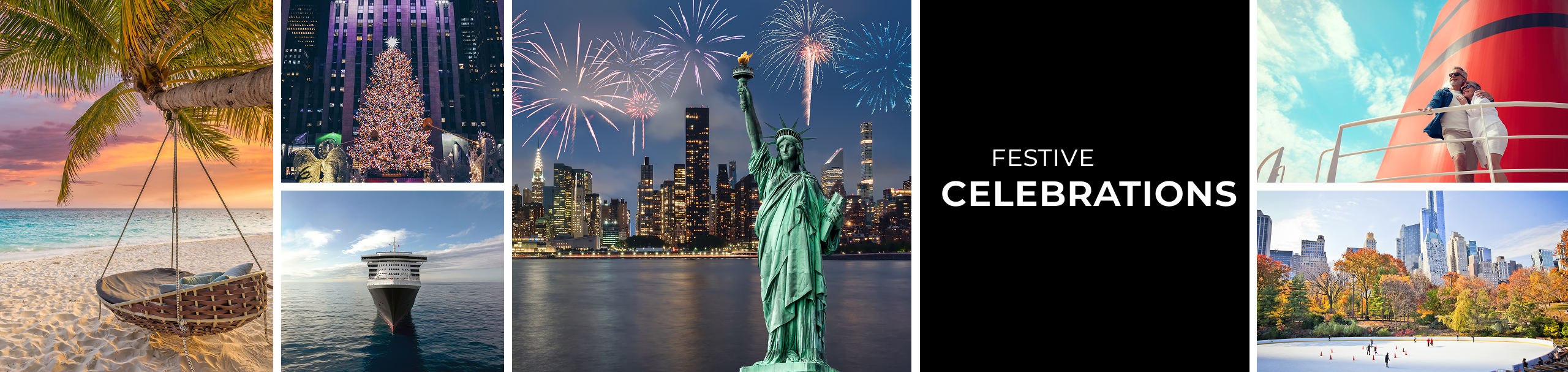 Three cruises, one extraordinary no-fly adventure: savour a festive escape that combines timeless ocean elegance, sun-soaked island bliss, and the magic of New York City at New Year.