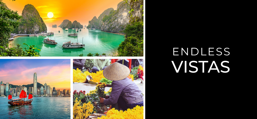 Immerse yourself in the diverse charms of Vietnam: from an overnight in port in Ho Chi Minh City, to the imperial grandeur of Da Nang, and the stunning limestone karsts of Hạ long Bay. Embrace the serene beaches of Cambodia’s Sihanoukville, admire the tranquil beauty of Thailand’s Ko Kood, and explore the majestic temples of Bangkok.