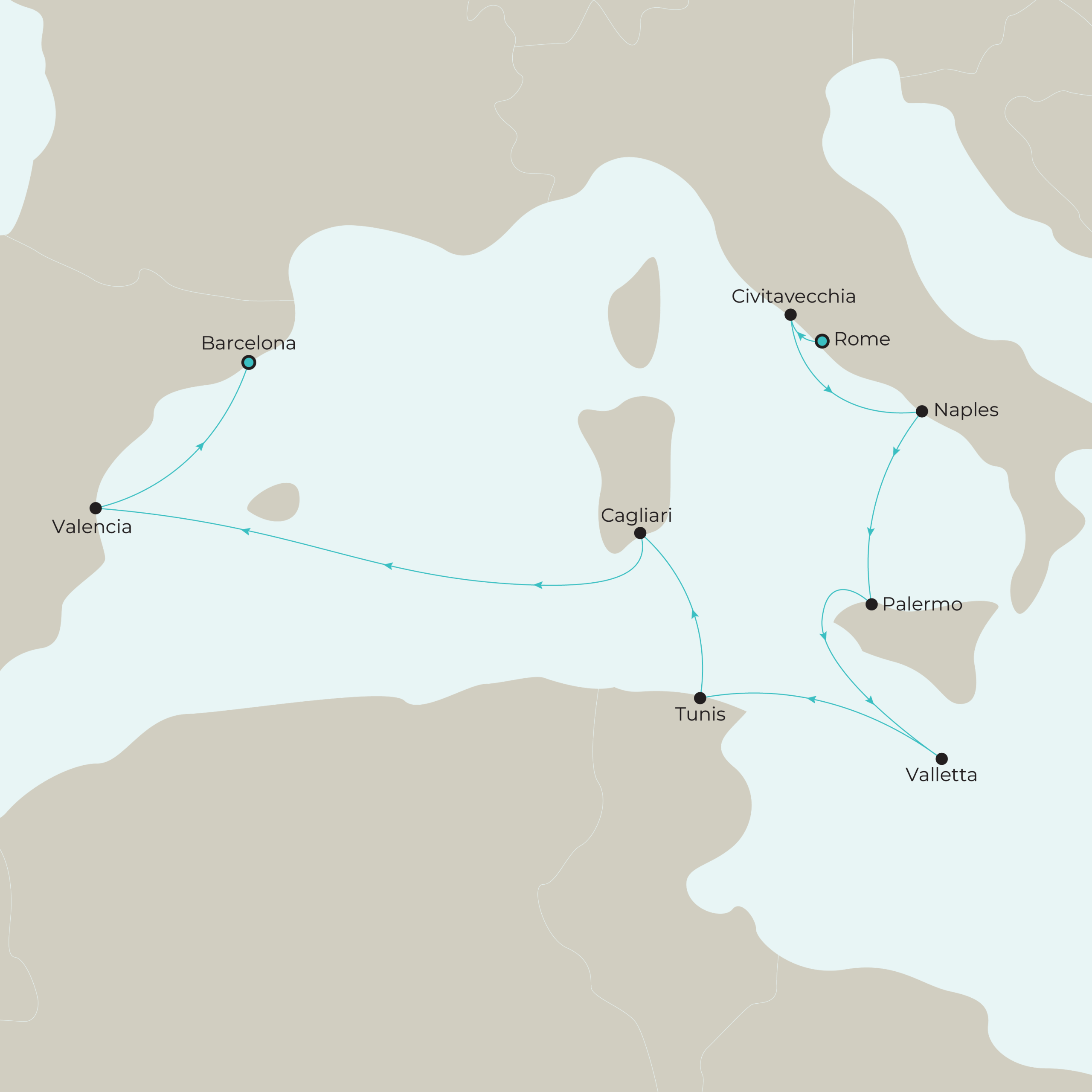 Experience the hallmarks of a Silversea voyage: an unrivalled space-to-guest ratio, personalised service anticipating your every desire, gourmet cuisine crafted by world-class chefs, and curated experiences that bring each destination to life. Sailing from Rome to Barcelona, you’ll unveil the wonders of the Mediterranean, from the delectable cuisine of Naples and Valletta’s intricate architecture to the colourful bazaars of Tunis and Valencia’s passionate flamenco rhythms. Embrace the historical allure of Palermo and gaze in awe at Cagliari’s endless stretch of beauty, deepening your connection with this diverse region.